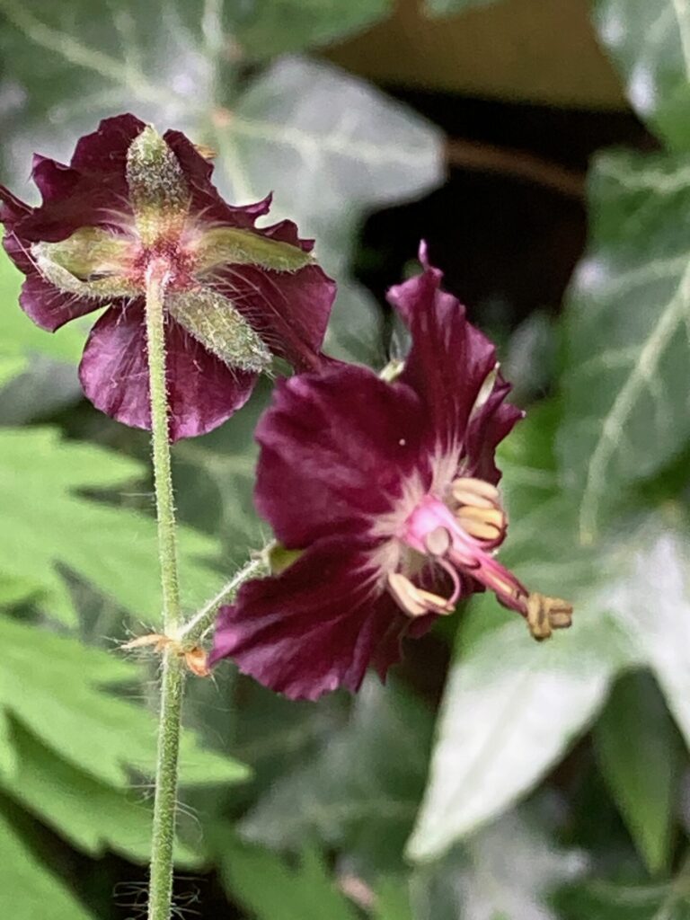 De Latijnse naam is Geranium Phaeum. Ze wordt maximaal 60 centimeter hoog en bloeit met purperkleurige bloemen. Naarmate ze ouder wordt stoelt ze wat uit dus gun haar de nodige ruimte achter in de border. De bloemen worden druk bezocht door vlinders, bijen, hommels en snuitkevers.