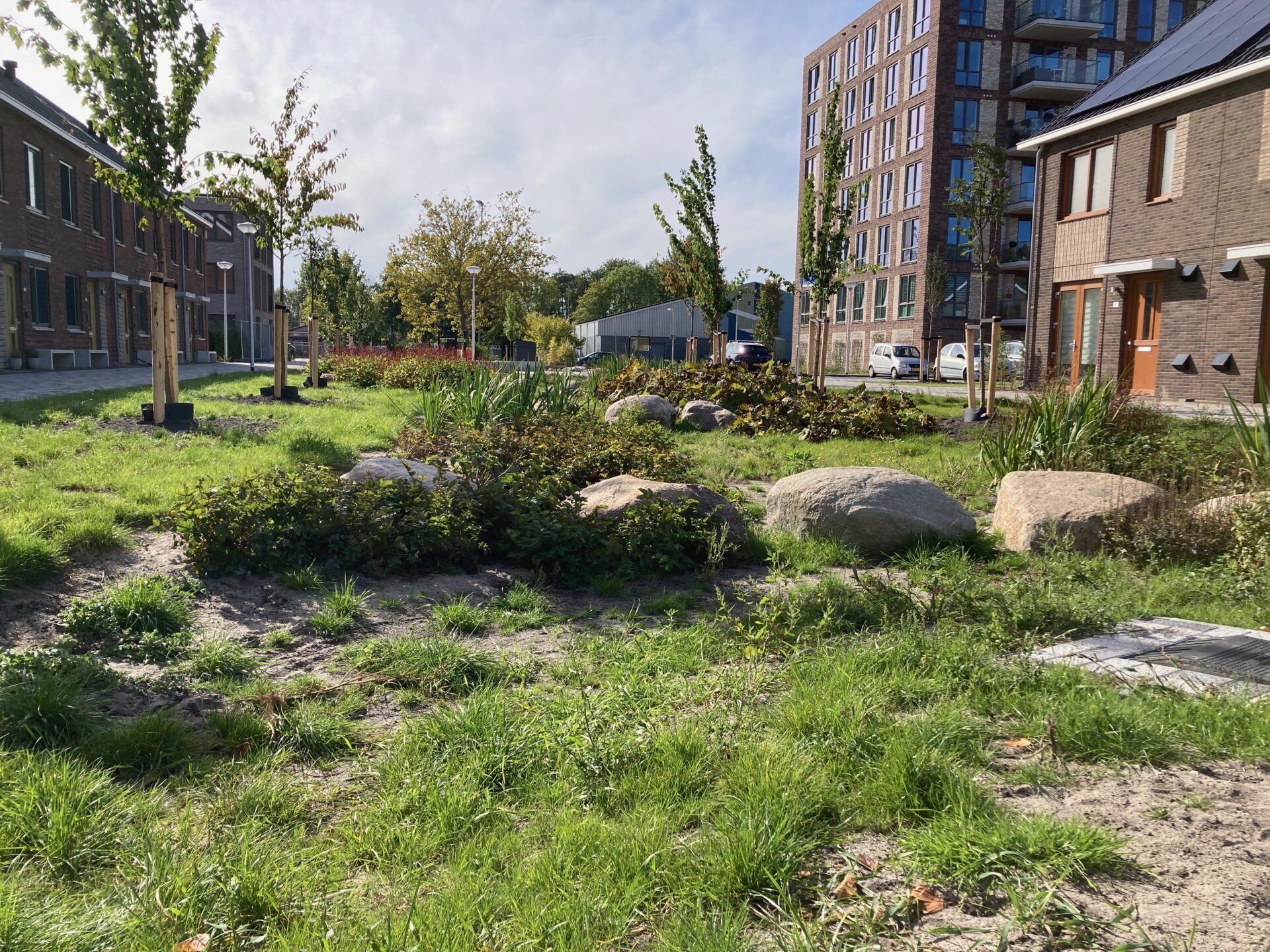 Groene tuinen met veel verschillende soorten bloeiende planten betekenen voor insecten stapstenen naar andere tuinen, parken, bloeiende bermen en het buitengebied. Onze tuin betekent dus een ecologische verbindingszone temidden van het steen in de stad. Ze vormen kleine aaneengeschakelde leefgebiedjes, niet alleen voor insecten, maar ook voor vogels, amfibieën en zoogdieren. Met voldoende begroeiing vinden dieren in jouw tuin voedsel, een schuilplaats en gelegenheid tot voortplanting. Zorg voor afwisseling in hoge en lage begroeiing. Wanneer je bovendien voor een deel inheemse planten kiest, zullen zweefvliegen en verschillende soorten wilde bijen je tuin weten te vinden. Als je nog niet weet welke insecten je tuin bezoeken, kun je de app Obsidentify installeren op je telefoon. Je maakt dan een foto, en via de app kun je het gefotografeerde insect identificeren. Zo leer je op een leuke manier wat er zoal leeft in je tuin. Ik merk dat ik me steeds meer ga verwonderen over wat er allemaal te zien is in mijn tuin. Deze week kreeg ik hoog bezoek van de grote Keizerlibel, een imposant groot insect.